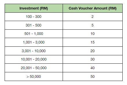 | Investment (RM) | Cash Voucher (RM) |